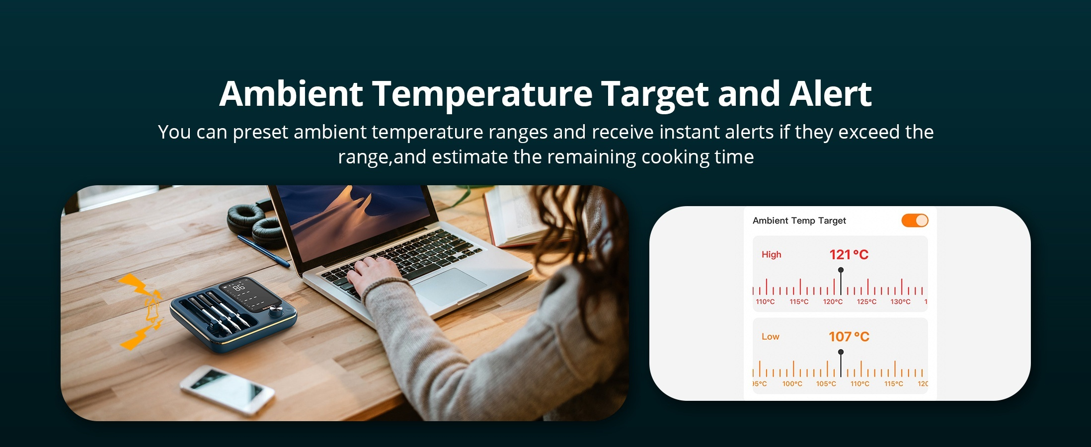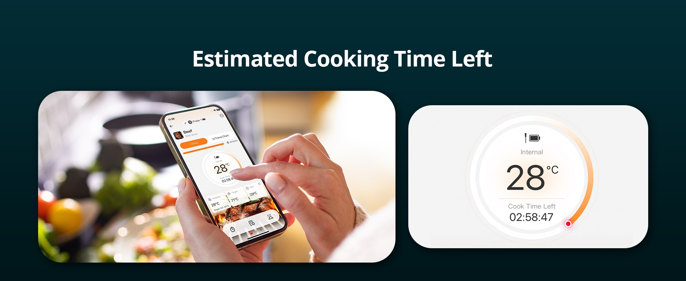 Met de slimme Estimated Cooking Time functie voorspelt de Inkbird app hoe lang het nog duurt voordat je gerecht de ingestelde kerntemperatuur bereikt.