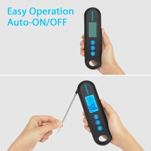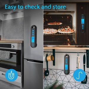De heldere roterende backlight-display past zich automatisch aan jouw kijkhoek aan, ideaal voor gebruik in het donker. Dankzij de magnetische achterkant bevestig je de thermometer eenvoudig aan je BBQ of koelkast.
