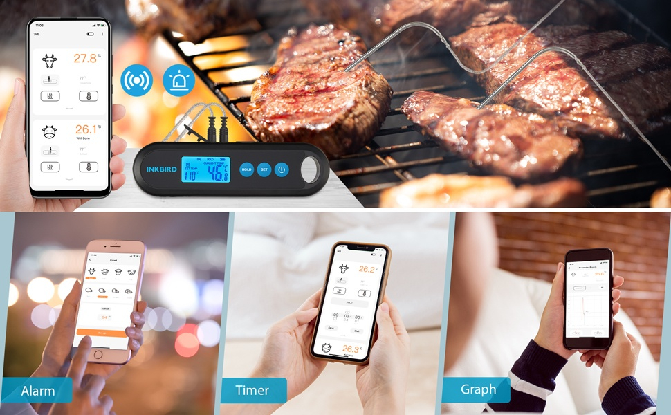 Maak van elke BBQ een succes met de Inkbird IHT-2PB BBQ Thermometer – de ideale tool voor wie houdt van perfect gegaard vlees. Deze 2-in-1 vleesthermometer combineert snelheid, precisie en duurzaamheid in één compact ontwerp.
