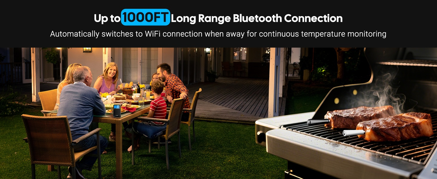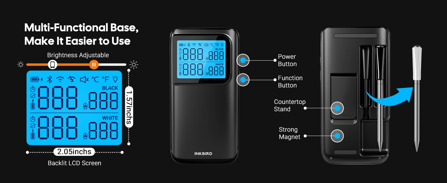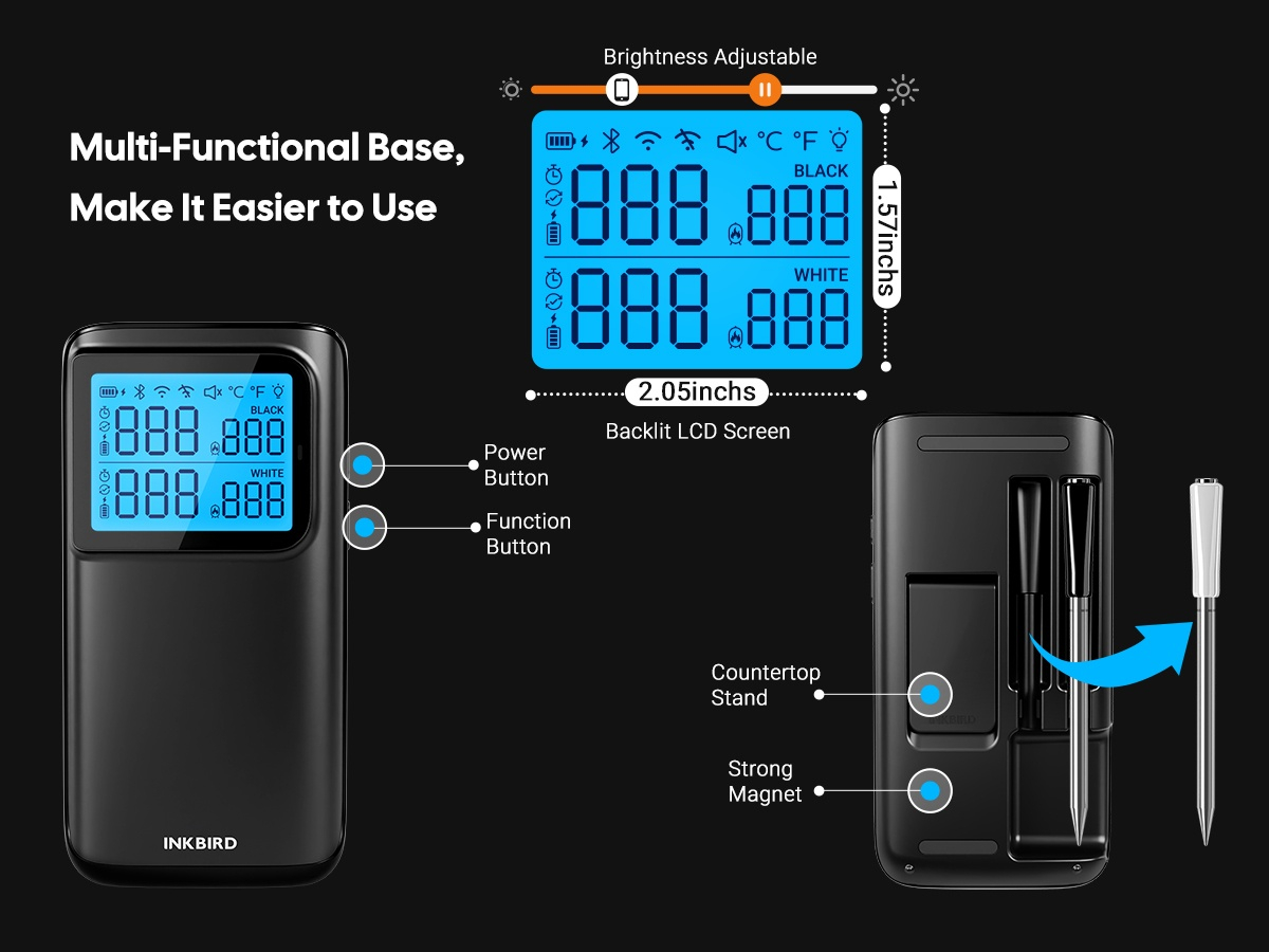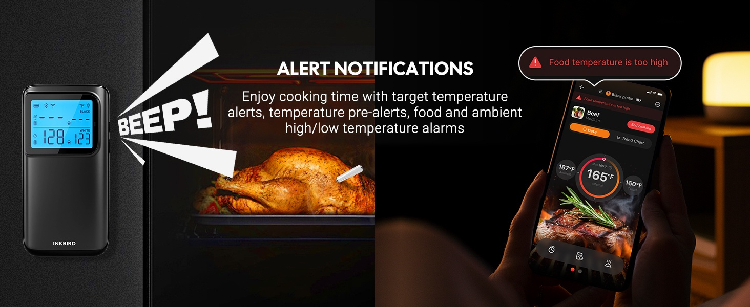 Dankzij de Bluetooth én WiFi-verbinding blijf je altijd verbonden met je gerechten, waar je ook bent. Via de gebruiksvriendelijke Inkbird App kun je de temperatuur in real time volgen, waarschuwingen instellen en recepten opslaan.